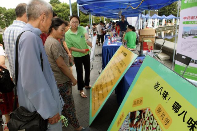 这是一场场面宏大、内容丰富、意义重要、百姓喜爱的“中医药文化”盛宴,以至于,浙江省唯一的国医大师葛琳仪和多位浙江中医名家赶来了,浙江省中医药管理局的主要负责人赶来了,浙江省中医药学会的负责人来了,集聚了我省众多中医药名家的浙江省中医药学会门诊部赶来了,我省中医药最高学府浙江省中医药大学的师生赶来了,我省著名的中药生产厂家桐君堂药业、佐力药业、一真堂药业、景岳堂药业等……都赶来了。这场“包”下了整个杭州运河广场的活动,叫“中医中药中国行——中医药健康文化推进行动·中医药健康你我他”主题活动。昨天,是我国首部中医药法《中华人民共和国中医药法》正式实施一周年,也是浙江省中医药正式命名为“浙派中医”一周年。