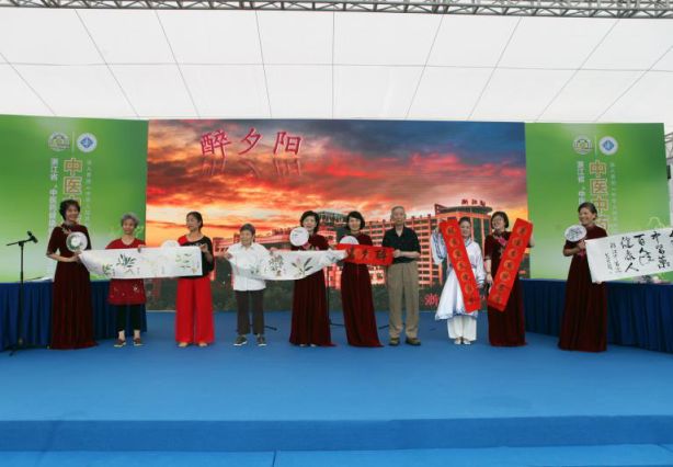 8时,舞台上的主持人宣布“中医中药中国行——中医药健康文化推进行动·中医药健康你我他”主题活动开启。一台台散发着浓浓药香的节目,让台下闻讯从四处赶来的居民们陶醉其间——浙江中医药大学学生表演的八段锦、太极拳、武术、养生操、舞蹈;来自绍兴柯桥的小学生们朗诵的《方歌诵》、《越医赋》等中医文化篇章;浙江省中医院医生药师们的醉夕阳系列和中医书法、“浙八味”书画展示,压轴的陈氏太极……引来叫好不绝掌声阵阵。