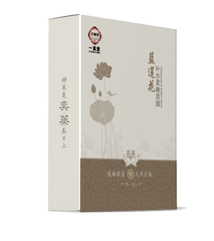 浙江一真堂蓝莲花补水柔嫩面膜,研发并加入中草药成分,给面膜使用者带来升级版的体验。